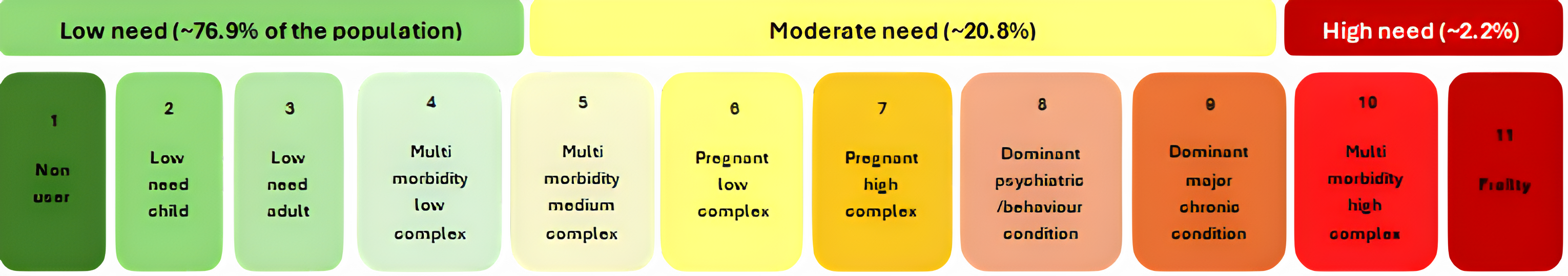 Patient Need Groups categorise patients based on the complexity and intensity of their healthcare need, not just their medical conditions. The PNG system considers a wide range of information, such as long-term conditions, how often a person needs healthcare, and the level of support they are likely to require. Understanding these groups helps explain why different patients may need different types or levels of care.